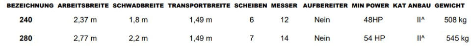 Se rie naus stattu n g Zapfwelle mi t 1000 U/min Rahmen mi t Pendelaufhängung Hydraulische Zent ralaufhängung „Hydro- Float“ Quick-Lift“-System: Hydraulikzylinder heben die Maschine bei Vorgewendemanövern an Hydraulisches Hindernissicherheitssystem, während des Betriebs einstellbar Niedrigp rofil-Schneidbalke n mi t Q+-Sch e iben Langleb ige Q+-Scheiben mit Schnel lwechselklingen Zent ra le Rot at ion der rd e rsch e ib e Spira lförmig e Messer Gegenschnei den Umkehrbare Scheibenk lingen Kufen vollständig abgedeckt Einstellbare Arbeitshöhe mit Feder bis zu 40 mm, An passung des Schnittwinkels um 3° Horizonta le oder v ertika le h intere Transportposition mit automatischem Ak ti vierungssicherheitssystem Feste Hubarme , die die Zapfwelle in Lin ie halten Zapfwelle mi t Rutschkupplung (1" 3 /8 Z6) Erforderl iche Steuergeräte: 3 Einfachwirkend Be leuchtungssatz VERSIONEN PC Y-förmiges Polyethylen Zinkenaufbereiter „Easy-Dry“-System: Mit nur einem Hebel können Sie die Streubreite einstellen