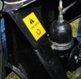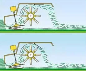 Einfache Steinsicheru ng Die einfache mechanische Ste insicherung ermögl icht beim Auftreffen auf ein H indernis ein Ausweichen der gesamten Mäheinheit nach h inten.