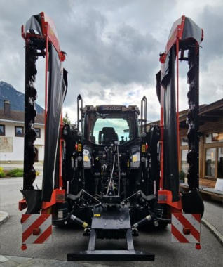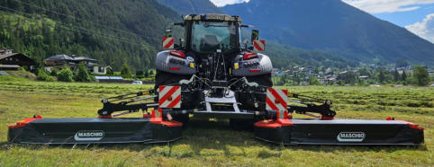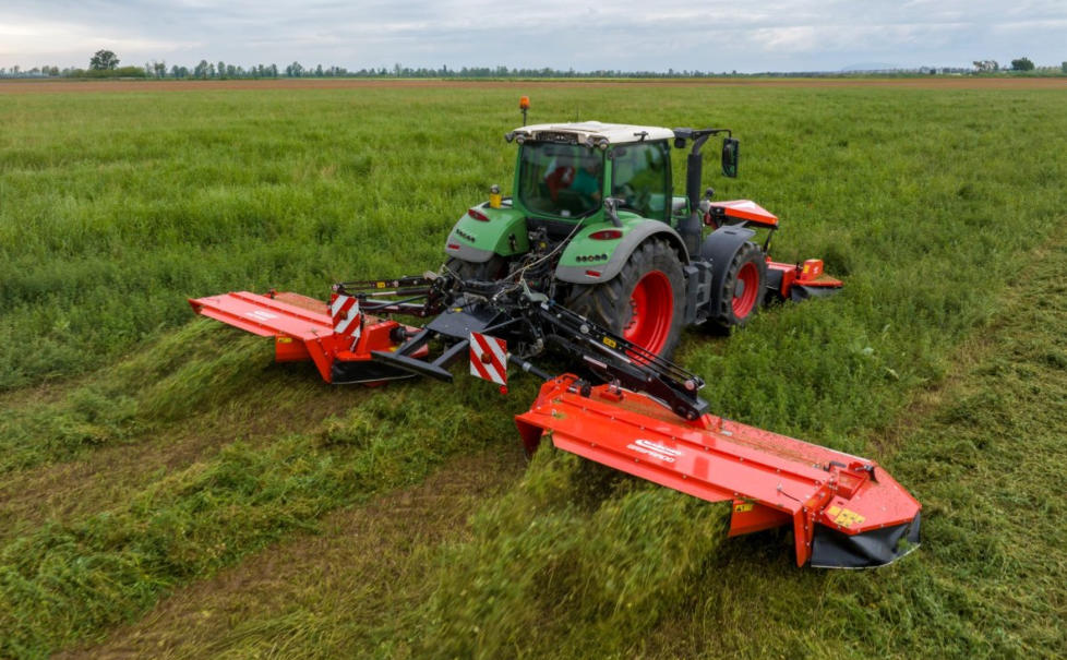 Die Bora Twin-Mähwerke von Maschio Gaspardo sind auf maximale Durchsatzleistung ausgelegt. Mit diesem Dreifachmäher können Sie dank einer Arbeitsbreite von 8,60 m sehr hohe Flächenleistungen erreichen. Die Mähwerke, die aus zwei pen-delnd aufgehängten Mäh einheiten mit jewei ls a cht Scheiben bestehen, haben ein e n außergewö hnlich niedrigen Le istungsb e-darf, so d ass mit optimiertem Kraftsto ffverbrauch gearbeitet werde n kann.