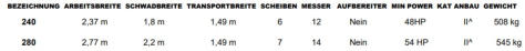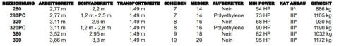 Se rie nausstattung Zapfwelle mit 1000 U/min , Versionen 280-320 auch mit Zapfwelle mit 540 U/min erhä ltl ich Zapfwelle mi t Rutschkupplung (1" 3 /8 Z6) Dre ipunktaufhängung, KAT II Hydraulische Zent ralfederung „Hydro -F loat „Quick-Lift“-System: Hydraulikzyl inder heben die Maschine bei Vorgewendemanövern an Hydraulisches Hindernissicherheitssystem, während des Betriebs einstellbar Nie drigp rofil-Schneidbalke n mi t Q+-Scheibe n